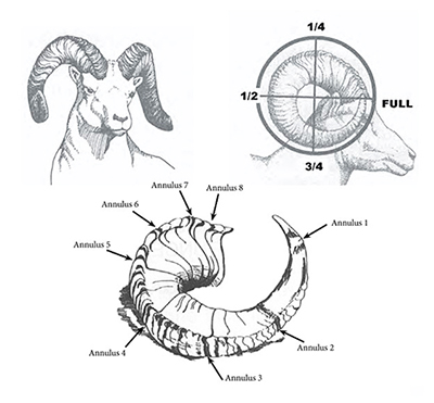 Because judging whether a ram in the field and over great distances is “at least eight years old” or that “the tip of at least one horn has grown through 360-degree of a circle described by the outer surface of the horn, as viewed from the side” is very difficult, ADF&G developed a field guide for sheep hunters designed to help inform their in-field decision-making process, to help ensure harvest regulation compliance, and for improved hunting success.