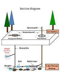 For more detailed information about set lining for burbot, see Setlining for Burbot Through the Ice (PDF 1,461 kB).