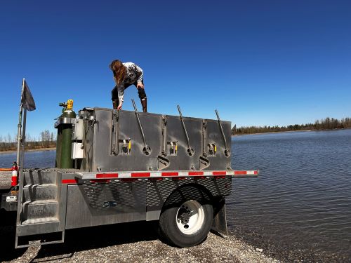 Fish produced at the Ruth Burnett Sport Fish Hatchery are stocked in 114 landlocked lakes across the Fairbanks, Nenana, Delta, and Glennallen regions, with lake trout also distributed to select lakes in Southcentral Alaska. Once fish reach appropriate size for release, they are transferred from rearing tanks using specialized pumping systems and transported in oxygen-equipped tanker trucks. For remote or inaccessible locations, fish are delivered by all-terrain vehicles, fixed-wing aircraft, and helicopters.