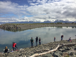 Both pink and sockeye salmon are stocked in Tutka Bay Lagoon by CIAA and return there from mid-June through July. Many anglers enter the lagoon on high tides to snag salmon. Anglers are typically more successful at snagging sockeye salmon and avoiding pink salmon in June.