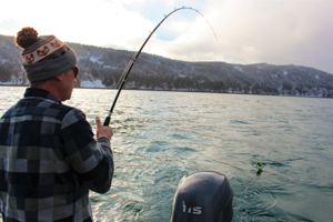 From April through August, when spawner king salmon are returning to Cook Inlet streams, anglers often target them in the Cook Inlet waters from Bluff Point north to Deep Creek. Access to the area occurs from private tractor launches at Deep Creek and Anchor Point, the Homer harbor, and some anglers launch small skiffs from the beach at Whiskey Gulch. Anglers find their best success fishing close to shore in waters less than 40 feet deep. Most anglers still use downriggers but divers or trolling sinkers are also effective. Herring or lures fished with flashers or dodgers have also proven successful. Spoons or spinners larger than ones typically used for feeder king salmon are often used to target these fish. Additional spawner king salmon are available at the two enhanced fisheries in Kachemak Bay. See the Enhanced Fisheries Tab above for more information.