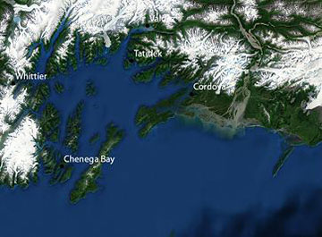 Prince William Sound is accessible by road to Whittier and Valdez. The Alaska Marine Highway System provides transportation to all communities within Prince William Sound including a fast ferry, the FVF Chenega between Cordova, Whittier, and Valdez.