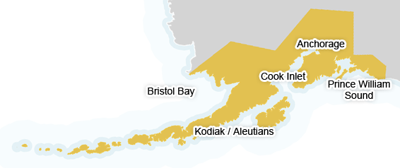 The Southcentral region, or Region II, extends northwest from Prince William Sound to the southern slopes of the Alaska Range, sweeping southwest to encompass Bristol Bay, Kodiak Island and the Aleutian Islands. The region is almost incomprehensibly broad, gathering in its sprawl a startling diversity of weathers, waters and fish.