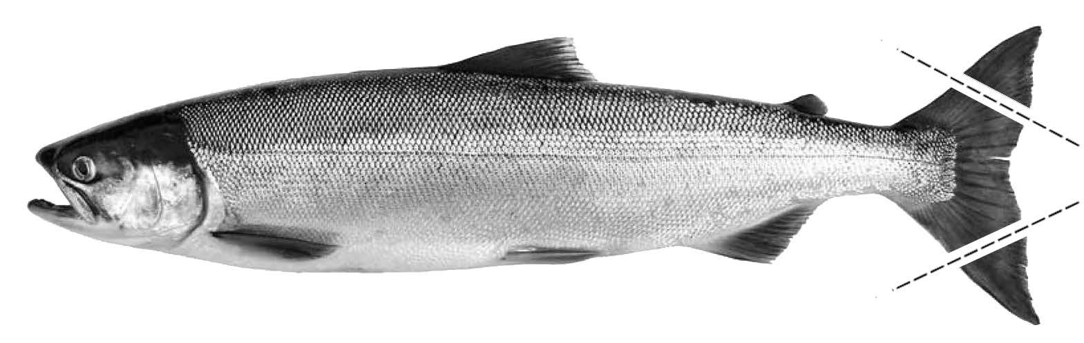 By regulation, you must "mark" salmon harvested in a personal use fishery in which a permit is required by clipping both tips of the tail fin. Scissors or shears are the best way to cut off the tips of the tail fin.