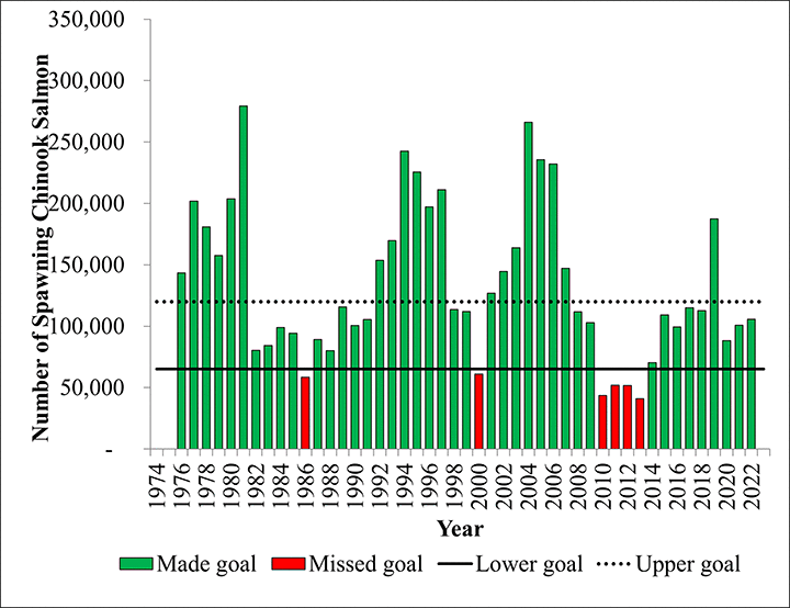 Annual estimates of the total abundance of adult Chinook salmon that return to the Kuskokwim River are important for ensuring the population is managed in ways that promote long-term health and sustain existing fisheries. A time-series of abundance estimates, spanning several Chinook salmon generations, allows fisheries biologists to understand changes in productivity, which is an important first step to investigating the key drivers of Chinook salmon health. Abundance and productivity estimates are also used to establish escapement goals, forecast future run size, and evaluate the number of fish that can be harvested annually.