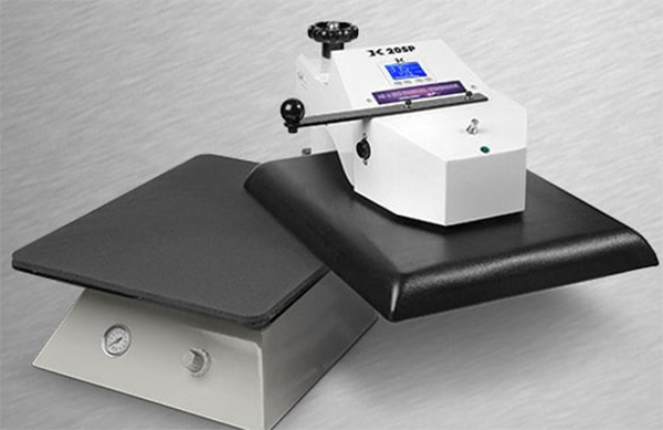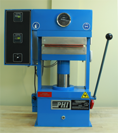 There are two types of presses used in Alaska: hydraulic (Figure 4) and air-operated (Figure 5). Air-operated presses require an air compressor. The pressure, temperature, and duration of press to use for the best quality press changes with the thickness and composition of the acetate. Other materials used while pressing scales are commercial grade silicon heat guards and a baking sheet.