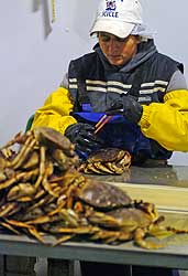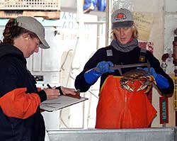 The data collected during dockside sampling are used to generate size frequencies by fishing area for the commercial Dungeness crab fishery. Port sampling data is useful in determining stock composition. Size frequencies and shell condition information is also useful for evaluating year class cohorts. Information on limb loss, disease, and carapace injuries, and soft shell measures are also useful for gauging overall population health.