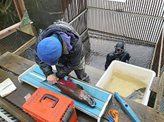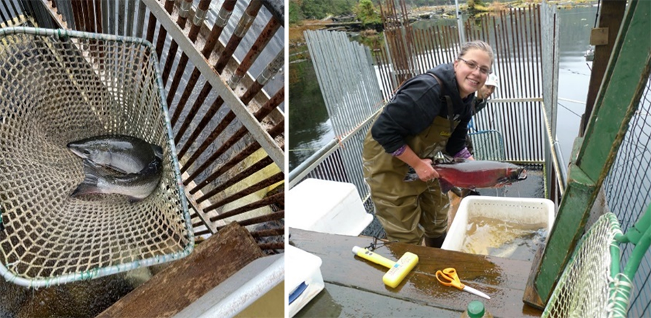 Some sockeye and coho salmon smolt collected at the trap undergo further sampling (Figure 12). Scale samples (for age composition), length, and weight data are collected daily from a subsample of the population of both sockeye and coho salmon. While the age compositions vary from year to year, most sockeye salmon outmigrating from Hugh Smith Lake have been residing there for 1 year or 2 years, and a small portion leave after 3 years. Similarly, most coho salmon at the lake tend to leave after rearing in stream or back-channel habitat after just 1 year, but some remain longer and leave after 2 years.