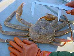 The long term goal of the survey is to provide information on the spatial distribution and health of the stocks. Information produced by the survey to achieve these goals includes CPUE, stock composition, female clutch fullness, female maturity, male length/weight relationship, male chela height/carapace width relationship and visual detection of disease and limb loss.