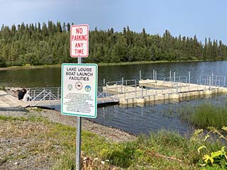 This project was completed summer 2021. Additional parking space increases safety by relocating vehicles out of road traffic travel lanes into the new parking area, accommodates more users, and improves safety in the loading/unloading zone. The new floating dock adds safe access into/out of boats for handicap and elderly as well as safe tie up for loading/unloading. The new concrete boat launch extends into deeper water and is wider to allow boats to be launched/loaded two at a time. And three informational kiosks panels were added. A celebratory ribbon cutting event took place on August 16, 2021. Watch the video here.