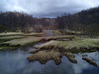 Traversing drainages north of Ugak Bay, the Saltery Cove Trails provide motorized access to habitat ranging from low wetlands to exposed alpine ridgelines. Trail users set out southwest from Chiniak Highway along the American River into the mountains. After descending the pass, heading west at the fork goes to Saltery Lake, while choosing east leads to Lake Miam.