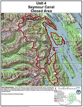 Area Description: Unit 4 the Seymour Canal Closed Area (Admiralty Island), including all drainages into northwestern Seymour Canal between Staunch Point and the southernmost tip of the unnamed peninsula separating Swan Cove and King Salmon Bay, and including Swan and Windfall Islands