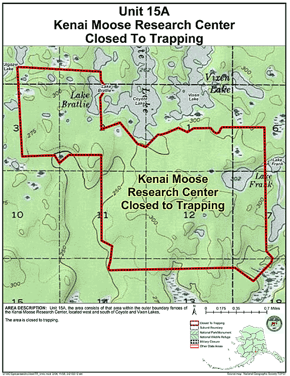 | Unit 15A, Kenai Moose Research Center Closed Area | 15A | Closed to trapping |