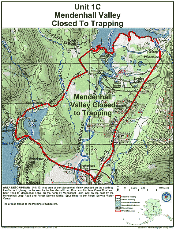 | Unit 1(C) Mendenhall Valley | 01C | Closed to the trapping of furbearers |