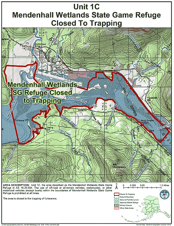 | Unit 1(C) Mendenhall Wetlands State Game Refuge | 01C | Closed to the trapping of furbearers |