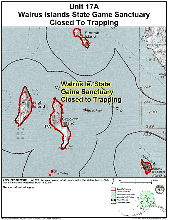 | Unit 17 Walrus Island State Game Sanctuary | 17 | Closed to trapping |