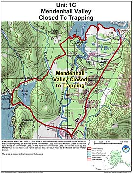 Area Description: Unit 1(C) that area of the Mendenhall Valley bounded on the south by the Glacier Highway, on the west by the Mendenhall Loop Road and Montana Creek Road and Spur Road to Mendenhall Lake, on the north by Mendenhall Lake, and on the east by the Mendenhall Loop Road and Forest Service Glacier Spur Road to the Forest Service Visitor Center
