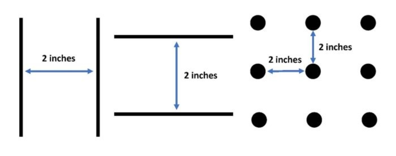Place deterrents (at least ¼ inch in diameter) on the outside of windows spaced 2 inches apart vertically and horizontally. Examples include: