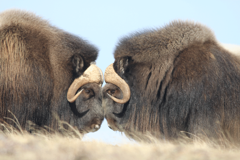 Use good judgment and strive for a clean shot while muskox hunting. Patience is a necessity because it is common for muskoxen to group up after the disturbance of a shot. This makes identification of the wounded animal for follow up shots very difficult. Take your time, know what lies behind your target, wait for muskoxen to disperse, and allow your first shot to be the best shot for a clean kill.