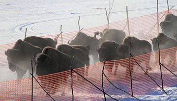 Friday, April 3, 100 wood bison that had been kept in temporary pens near Shageluk, Alaska, for just over a week were led by Alaska Department of Fish and Game Biologist Tom Seaton across the Innoko River to freedom.