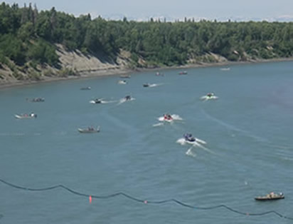 As another indicator of run strength, we also collect information in Cook Inlet about the commercial eastside setnet king salmon harvest from information setnet fishermen provide on fish tickets. This information is used as an indicator of abundance for the late king salmon run only. In addition to run strength, the commercial king salmon harvest is also influenced by other factors such as how intensively eastside setnet fishermen are fishing in the inlet, which generally correlates with how big the sockeye run is.