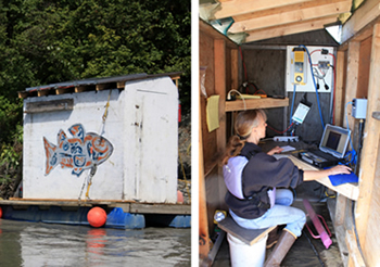 At most sonar sites in Alaska, ADF&G biologists use sonar to sample over time rather than run sonar continually. At the Yentna River, technicians record 10-minute sonar snapshots each hour along each bank, expand the counts to hourly estimates and then sum the hourly estimates to produce a 24-hour estimate. Research has found the difference in estimates generated while running sonar continually and estimates generated while sampling is very small. But the difference in operational costs is huge (see sampling methods study (PDF)). Now that ADF&G operates the site as a research-only project, it does not process the site's sonar data to produce estimates until after the field season. Sonar operations begin on July 7 and generally end between August 8 and August 15.