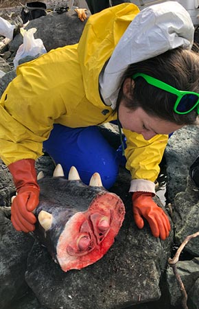 This has become a common practice and efforts are underway to address the problem (see the link to Southeast Alaska Sperm Whale Avoidance Project (SEASWAP) under more resources). Whales will nip fish neatly off the hooks leaving the head, or "floss," running the groundline through its mouth, stripping the fish and straightening the fishhooks. They also use the tension on the line to pop the fish off the hooks with their teeth without leaving any evidence of a fish, nor a straightened hook.