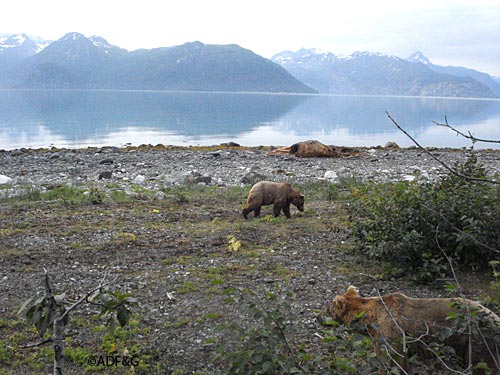 Biologist Tania Lewis with the National Park Service and Oregon State University graduate student Diana Raper placed a motion triggered camera on the carcass of a humpback whale that was found dead on the beach at Scidmore Cut in the West Arm of Glacier Bay in late May, 2010. Raper set up a motion-triggered camera and Tania Lewis, terrestrial biologist for the park, put a time-lapse camera on the whale. They photographed thousands of images before the carcass washed away Sept. 3. For more on this project, see the Alaska Wildlife News article: Scavengers On Camera.