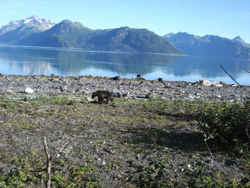 Biologist Tania Lewis with the National Park Service and Oregon State University graduate student Diana Raper placed a motion triggered camera on the carcass of a humpback whale that was found dead on the beach at Scidmore Cut in the West Arm of Glacier Bay in late May, 2010. Raper set up a motion-triggered camera and Tania Lewis, terrestrial biologist for the park, put a time-lapse camera on the whale. They photographed thousands of images before the carcass washed away Sept. 3. For more on this project, see the Alaska Wildlife News article: Scavengers On Camera.