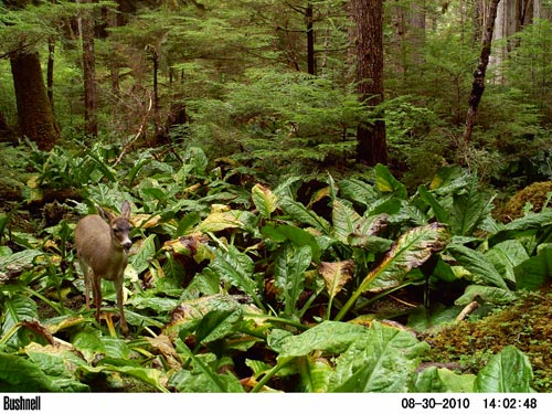 These images of Sitka black-tailed deer in a patch of skunk cabbage were taken between June 20, 2010 and September 18, 2010, on Rivellagigedo Island in southern Southeast Alaska. Thanks to Joseph Piston for contributing this series.