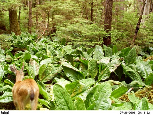 These images of Sitka black-tailed deer in a patch of skunk cabbage were taken between June 20, 2010 and September 18, 2010, on Rivellagigedo Island in southern Southeast Alaska. Thanks to Joseph Piston for contributing this series.