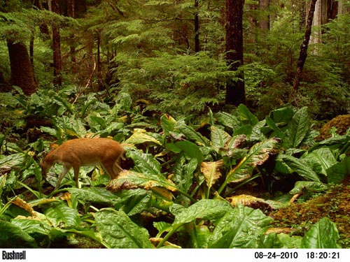 These images of Sitka black-tailed deer in a patch of skunk cabbage were taken between June 20, 2010 and September 18, 2010, on Rivellagigedo Island in southern Southeast Alaska. Thanks to Joseph Piston for contributing this series.
