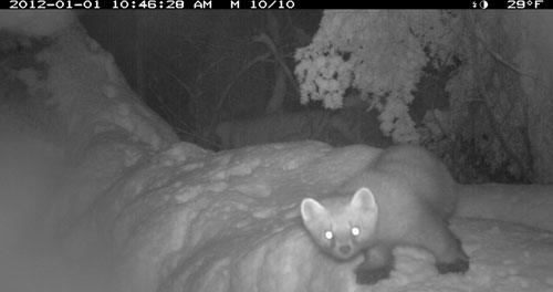 ADF&G biologists are monitoring animal activity at the site of wolverine live traps and documenting some unexpected visitors, including marten and brown bear.