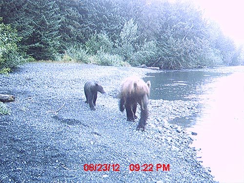 Robin Overall of Kodiak places her trail cameras on established bear trails, in view of rub trees, and near streams. She provided an amazing assortment of images featuring the famed Kodiak brown bears. -