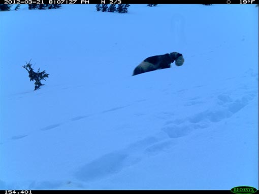 An assortment of wolverine images taken by remote, motion triggered trail cameras. -