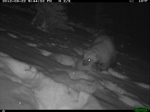 Night pictures of a marten near Sitka. -