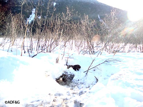 ADF&G biologists are monitoring animal activity at the site of wolverine live traps and documenting some unexpected visitors, including marten and brown bear. -