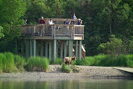Brown bears are active from May through October; the best viewing is in July and September. Wolves, moose, and beavers are also most visible during the summer. Red salmon begin migrating in late June and begin spawning in August.