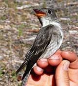 In my two months of birdwatching in wetlands around Anchorage last summer, I never actually saw one of Alaska’s most unassuming songbirds, the Olive-sided Flycatcher. Their gray and olive plumage camouflages them well in their evergreen environment and I found myself scanning the scraggly treetops in vain for the little perching bird. That isn’t to say they weren’t there, though; I heard their trademark call of “Quick! Three beers!” quite often ... Tracking Flycatchers Article Continued