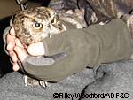 Biologist Steve Lewis held the little western screech-owl as Michelle Kissling attached the tiny backpack radio transmitter. For the next 10 months, this owl will be transmitting his location, helping to answer questions about screech-owls in Southeast Alaska.