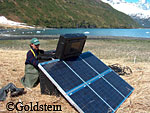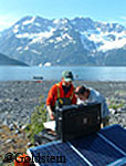 The scene was captured by a remote camera with an infra-red illuminator. Biologists are using waterproof, solar powered cameras and digital video recorders to study black oystercatchers in Harriman Fjord in Prince William Sound.