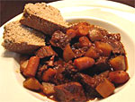 A quick visit to my neighbor Fran to work out the schedule for feeding her cat turned into trying out a new wine, and some more wine, and then a buzzer went off and she leaped up to get the something out of the oven: venison stew.