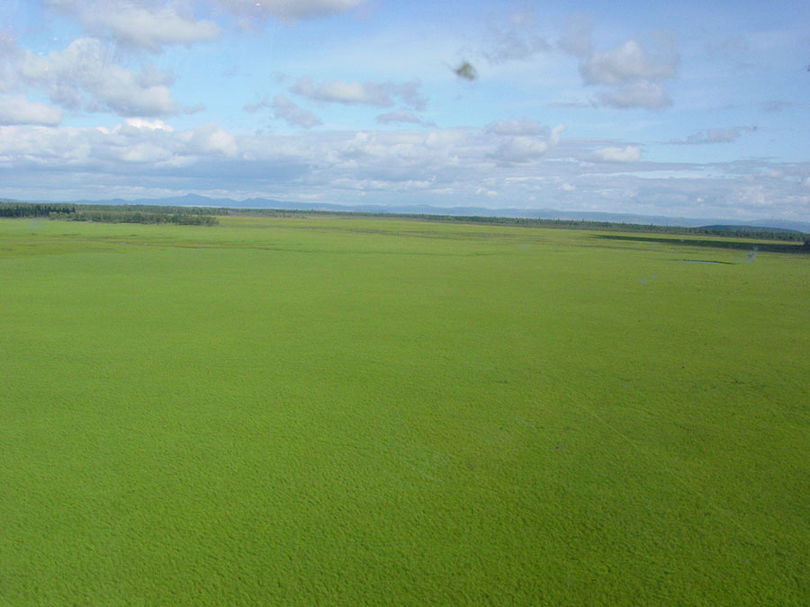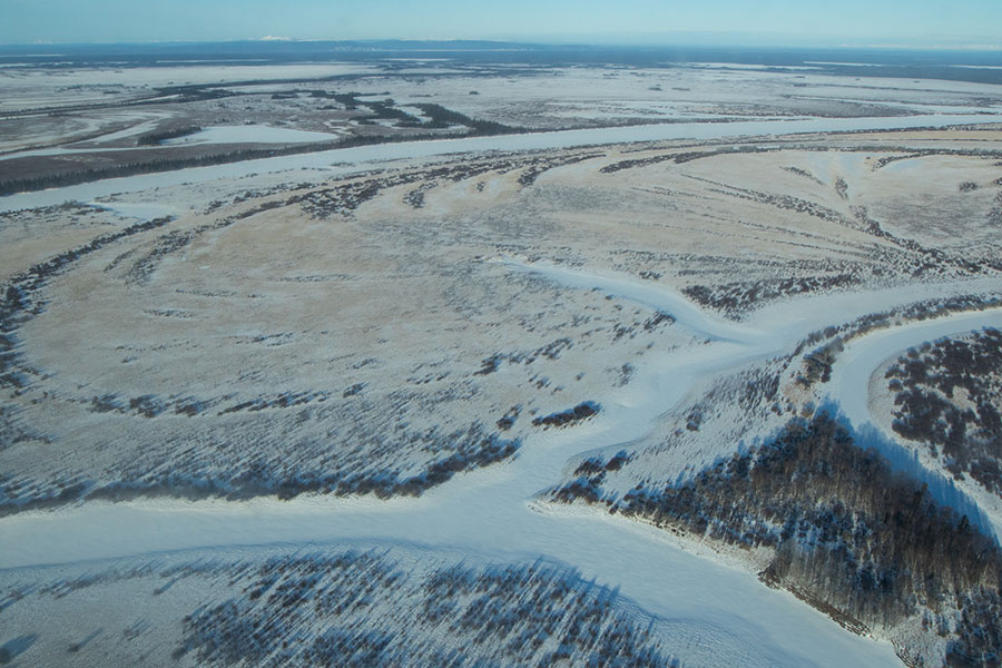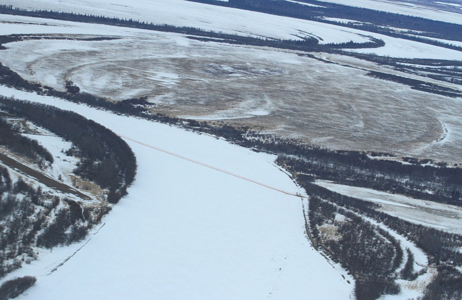 These photos show the landscape around Shageluk – the wood bison habitat. Several show wood bison swimming the Innoko River; and bison in early spring shortly after their release. All photos by Tom Seaton. Copyright ADF&G.